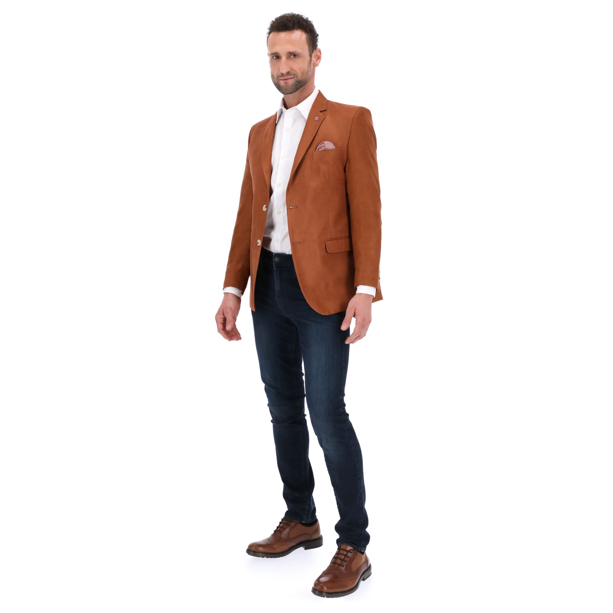 Saco de Caballero Ruanda Cielo, Tela Tipo Lino, con bolsas de parche, 2 botones, Composición 92% Poliester, 5% lino, 1% Elastano, 5% Tencel, Forro media espalda