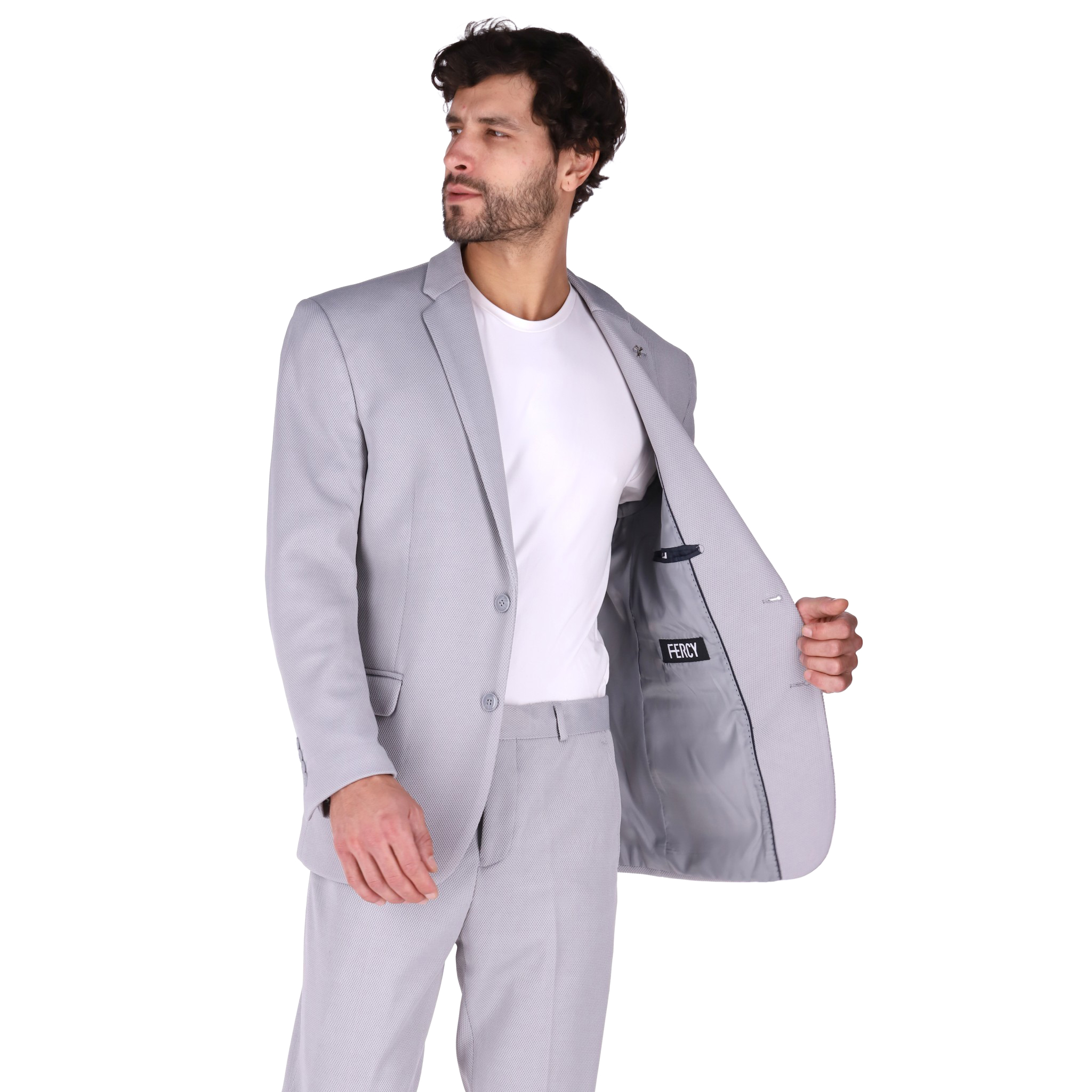 Traje de Caballero 2 Piezas ( Saco y Pantalón ) Tela Viscosa con Spadex, Saco 2 Botones de frente y 4 Botones por manga, Forro en combinación, Pantalon Con 2 Bolsas Traseras y Largo ajustable a altura, Corte Recto