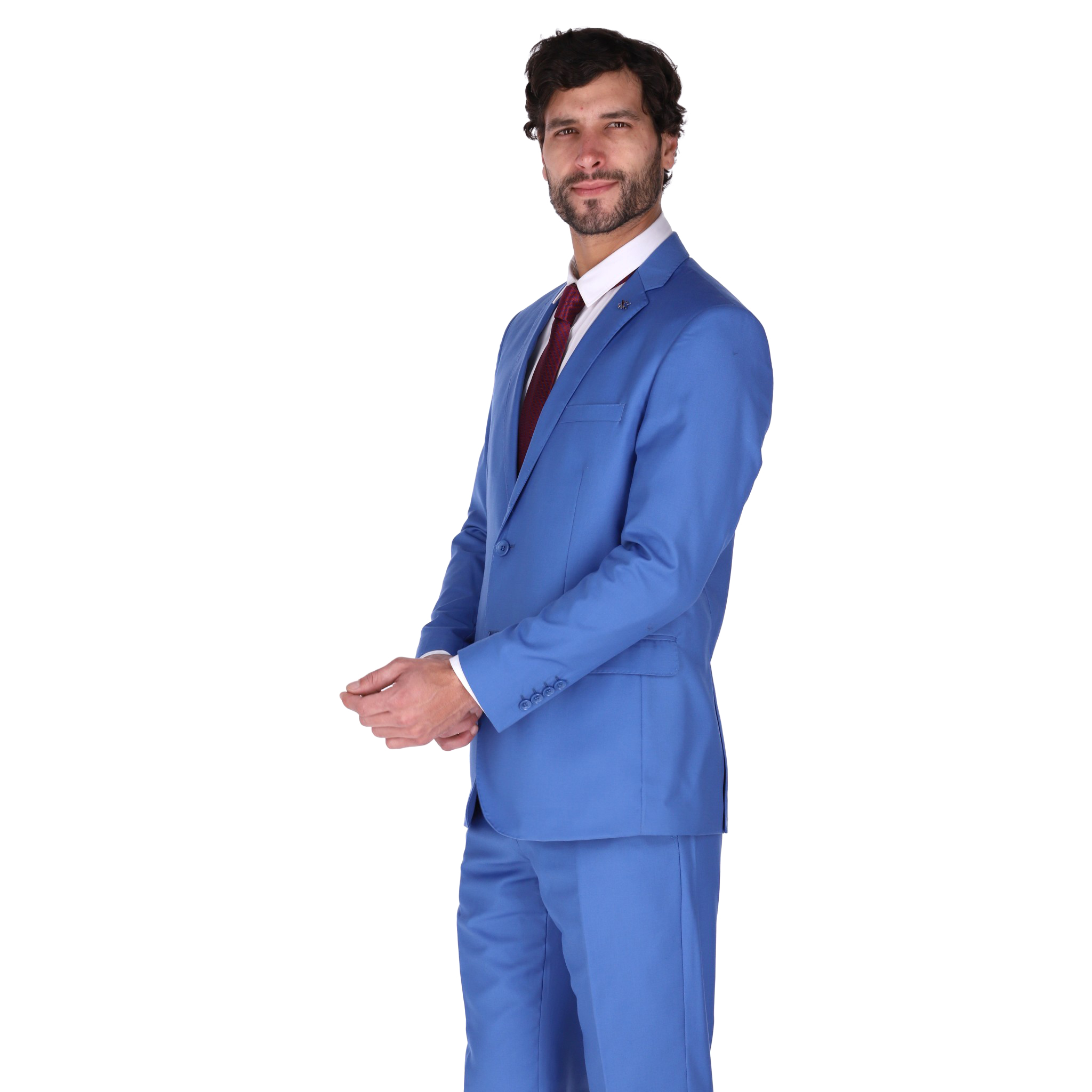 Traje de Caballero 2 Piezas ( Saco y Pantalón ) Tela Poliester- Viscosa Saco 2 Botones de frente y 4 Botones por manga, Forro en combinación, Pantalon Con 2 Bolsas Traseras y Largo ajustable a altura, Corte Recto