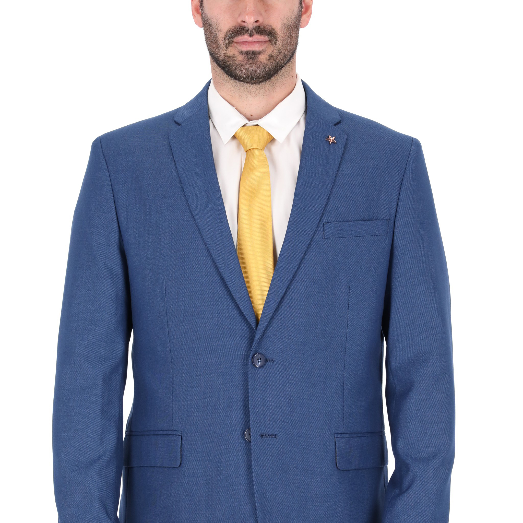 Traje de Caballero 2 Piezas ( Saco y Pantalón ) Tela Poliester- Viscosa Saco 2 Botones de frente y 4 Botones por manga, Forro en combinación, Pantalon Con 2 Bolsas Traseras y Largo ajustable a altura, Corte Recto