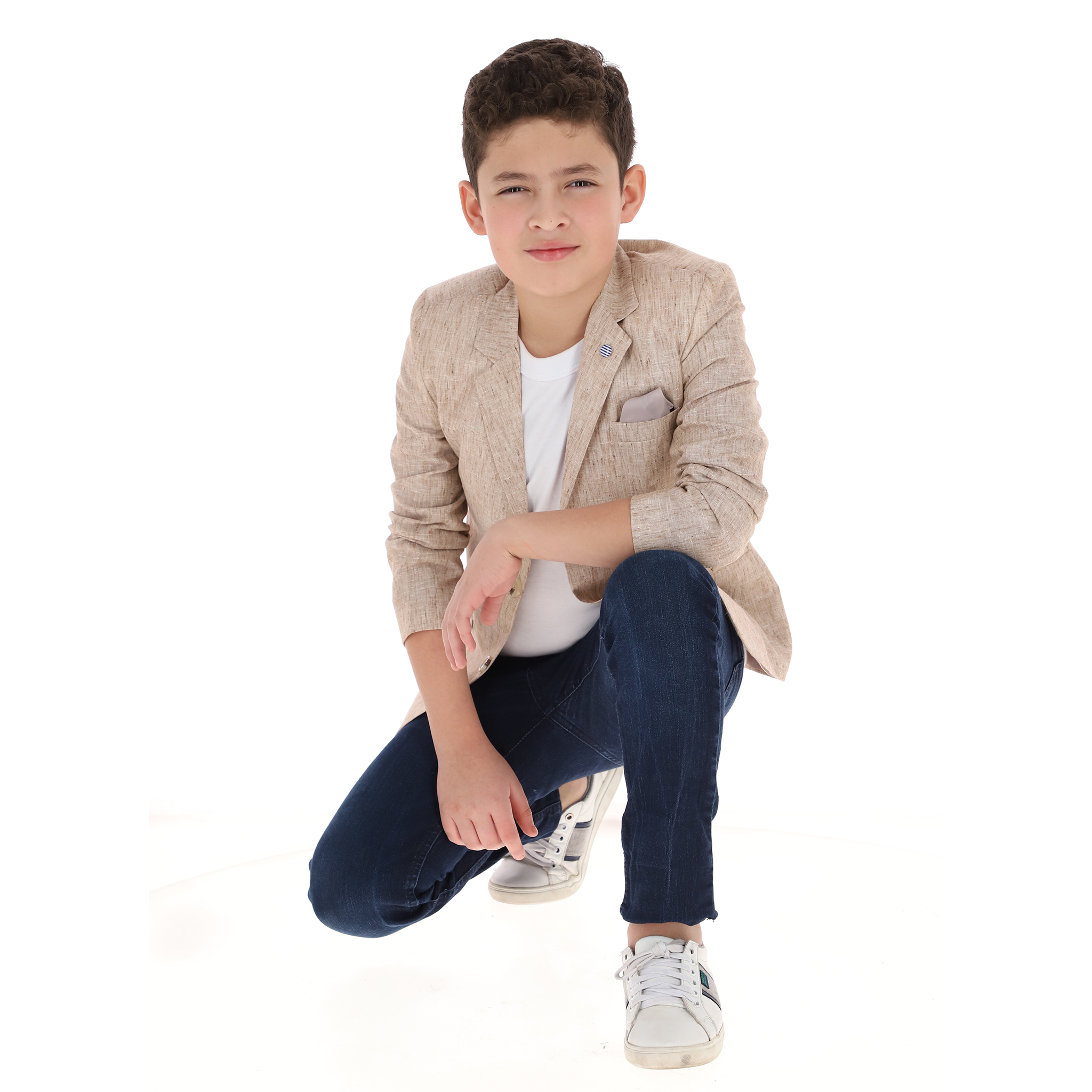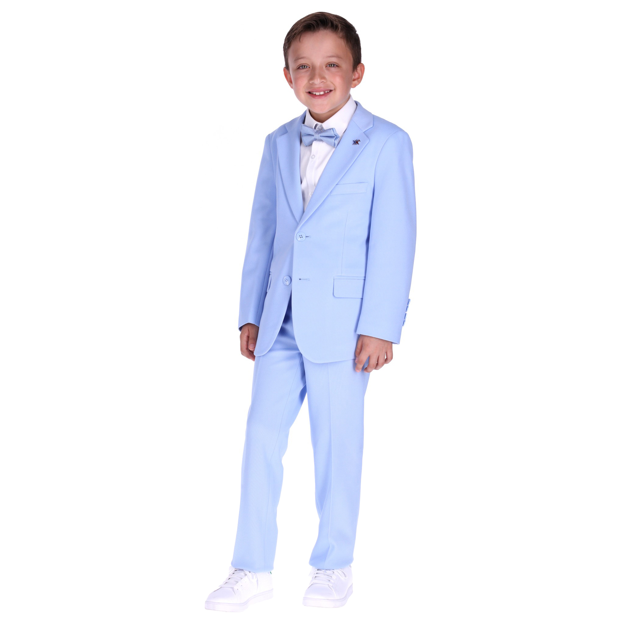 Traje de Niño 3 Piezas ( Saco, Chaleco y Pantalon), Tela Poliester-Viscosa. Saco 2 Botones de frente y 4 botones por manga, forro en combinación y pin en solapa, Corte Recto. Chaleco de 3 a 5 Botones de frente dependiendo de la talla, espalda en forro. Pantalon Corte Recto con cintura expansiva crece una talla, largo ajustable a altura.